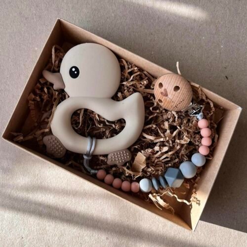 Čiulptuko laikiklis su kramtuku DUCK– puikus pasirinkimas mažyliams, kuriems pradeda dygti dantukai. Du praktiški produktai viename: čiulptuko laikiklis ir kramtukas kūdikiui. Žaismingų formų ir tarpusavyje derančių spalvų silikoninis laikiklis ir kramtukas patiks tiek mažyliams, tiek tėveliams. Šis maistinio silikono laikiklis ir kramtukas kūdikiui efektyviai masažuoja jautrias dantenas, padėdamas sumažinti dygstančių dantukų sukeliamą diskomfortą. Pagamintas iš 100 % saugaus, maistinio silikono – be BPA, ftalatų ir kitų kenksmingų medžiagų. Minkštas, malonus liesti, lengvai valomas ir draugiškas jautriai kūdikio odelei. Tinka daugumai čiulptukų, turi patikimą spaustuką, kuris tvirtai laikosi prie drabužėlių, vežimėlio ar automobilinės kėdutės.