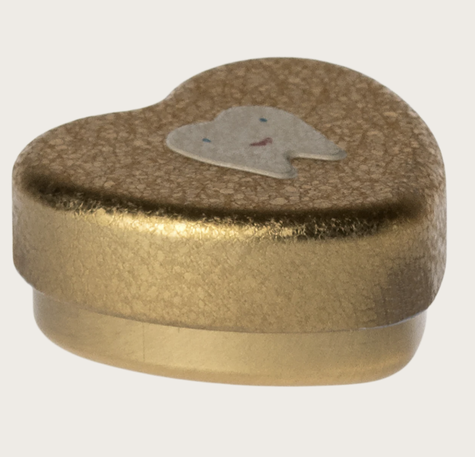 Ši metalinė širdelės formos dėžutė – puiki vieta saugoti pieninius dantukus, kad vaikystės prisiminimai išliktų ilgam. Dėžutės dangtelį puošia mielas dantuko reljefas ir ypatingas „įtrūkusio“ paviršiaus efektas.