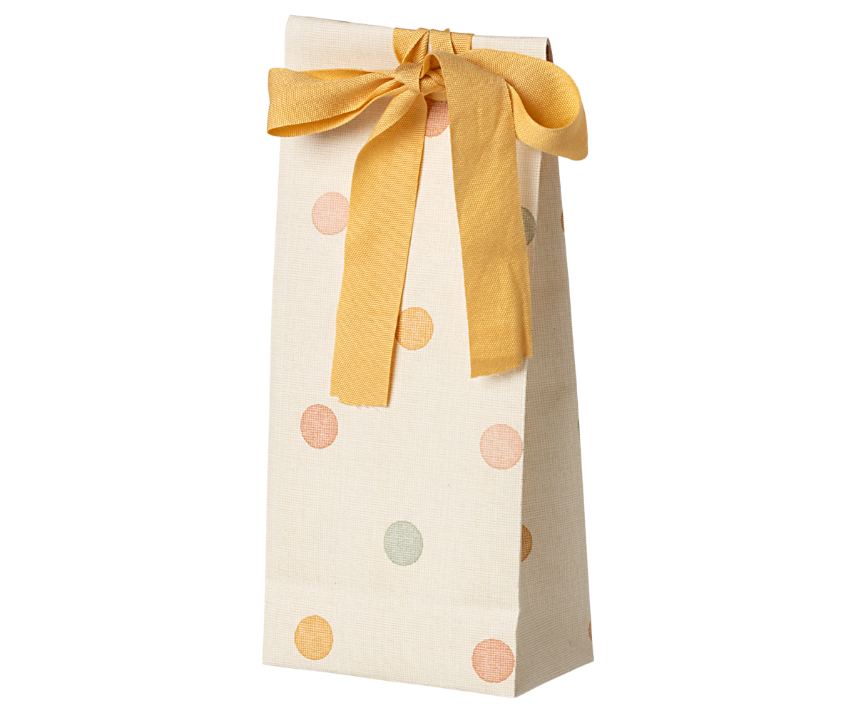 Suteikite savo dovanoms asmeniškumo su šiuo gražiu, raštuotu dovanų maišeliu. Papuoškite jį spalvinga juostele, kad išbaigtumėte įvaizdį. Tai labai paprastas ir greitas būdas supakuoti mažas dovanas, išlaikant nepriekaištingą išvaizdą.