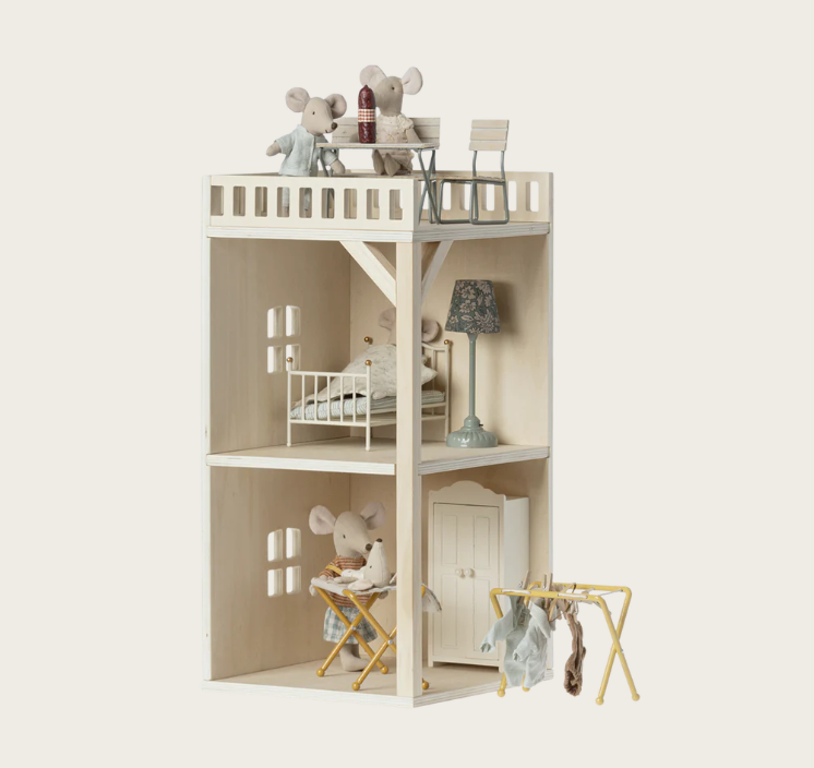 Šis skandinaviško dizaino kūrinys yra svajonių namai visiems Maileg peliukams. Jis pagaminta iš natūralios medienos, todėl bus  ne tik kokybiškas, bet ir ilgaamžis.
