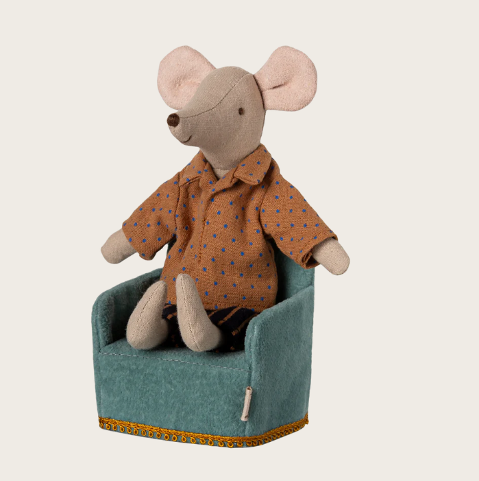 MAILEG žaislai: foteliukas peliukams pasižymi išskirtiniu Skandinavišku dizainu, kuris derina paprastumą, eleganciją ir funkcionalumą. Šie žaislai yra minimalistinio stiliaus, tačiau pilni detalių, kurios suteikia jiems charakterio. Dėl savo estetiško dizaino, Maileg žaislai ne tik džiugina vaikus, bet ir puošia jų kambarį.